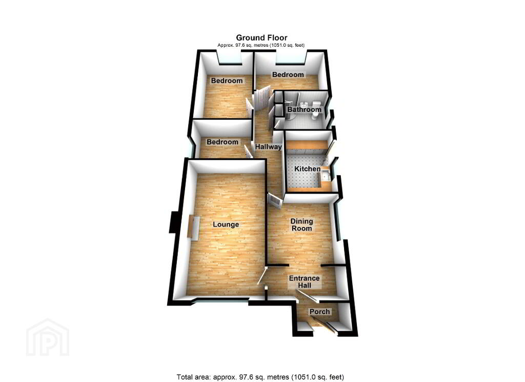 ENTRANCE PORCH: 7’3” x 3’8”. UPVC double glazed entrance door. Wood laminate floor. Glazed wooden door to: