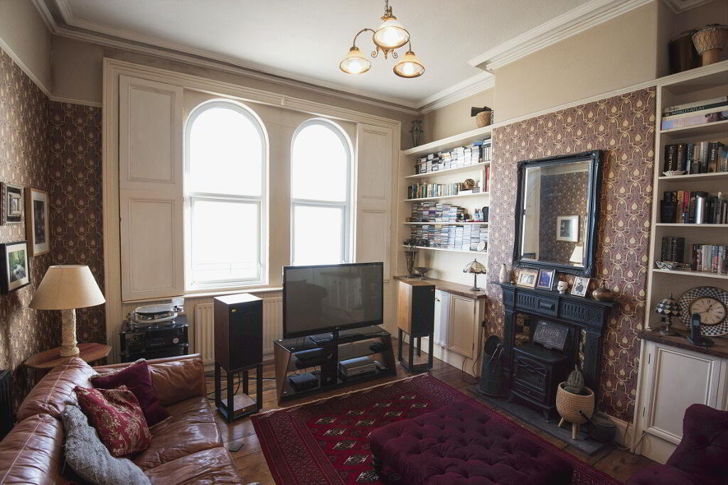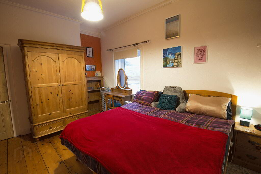 BEDROOM (2): 16’0” x 14’4” (4.87m x 4.36m). Feature cast iron fireplace with slate hearth. Cornicing. Ceiling rose. Solid wooden floor. Two radiators. Uninterrupted panoramic sea views across Belfast Lough and the Co Down coast.