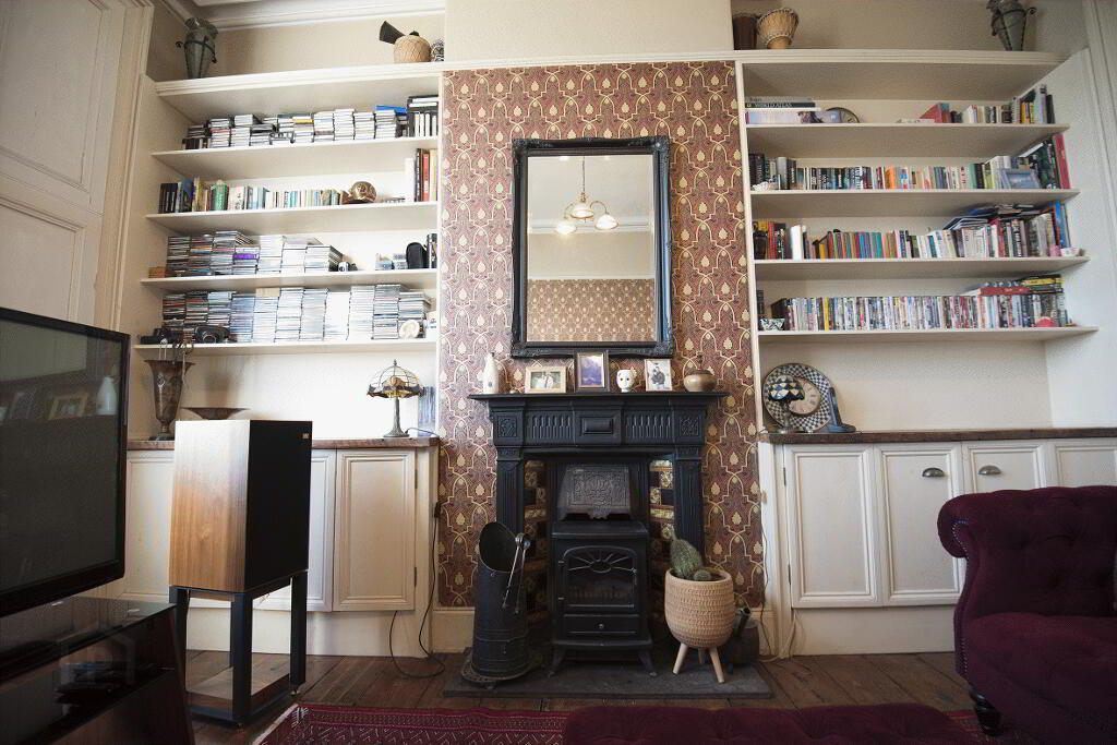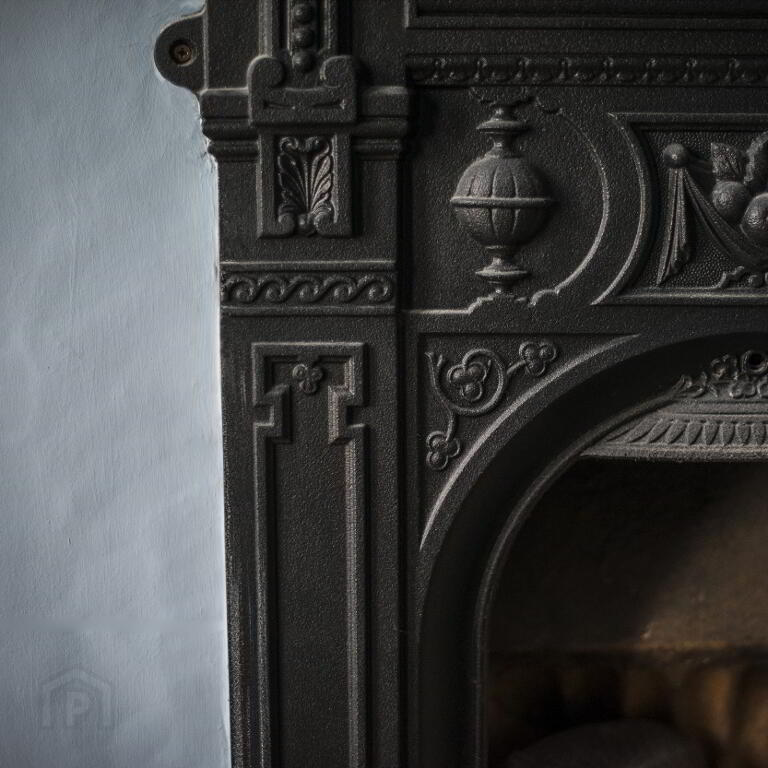 MORNING ROOM: 10’6” x 8’9” (3.20m x 2.66m). Feature cast iron fireplace with tiled inset and hearth. Glass brick detail. Original quarry tiled floor. Radiator.