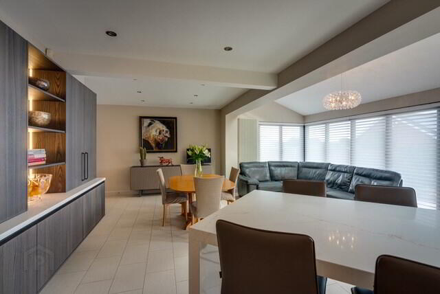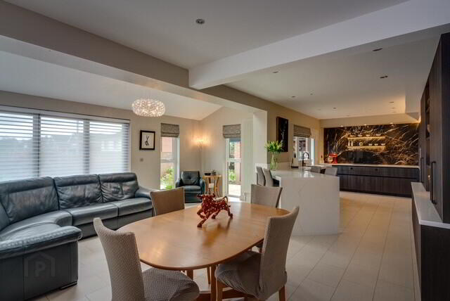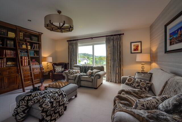 LIVING ROOM: 17’10” x 16’7”. Telephone point. TV aerial socket. Automated lighting system. Recessed down-lighting. Two radiators. UPVC double glazed sliding doors to balcony. Fabulous views across Bentra Golf Course and Larne Lough.