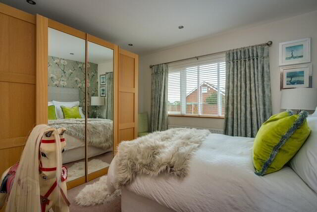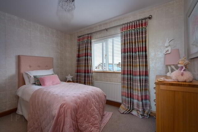 BEDROOM (2): 11’5” x 10’0”. Recessed down-lighting. Radiator. Far-reaching views across Bentra Golf Course and Larne Lough.