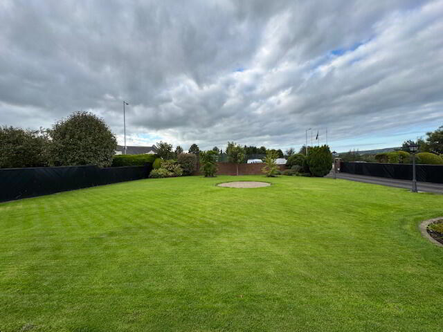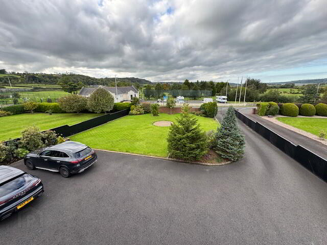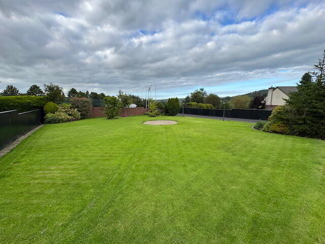 1.) Extensive gardens in lawn to front with tarmac driveway offering ample off-street car parking for multiple vehicles. Electric metal entrance gate. Outside lights.