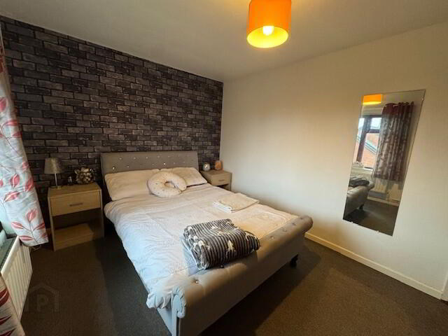 BEDROOM (1): 13’4” x 9’1”. Built-in robe. Radiator. Pleasant outlook across Whitehead town.