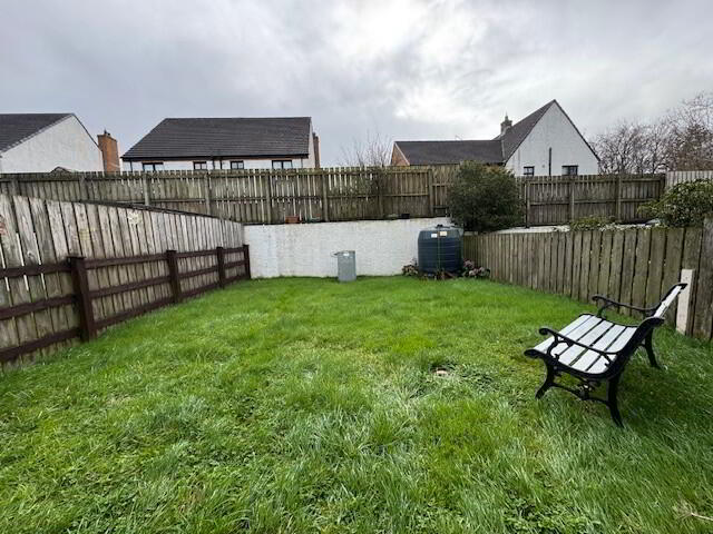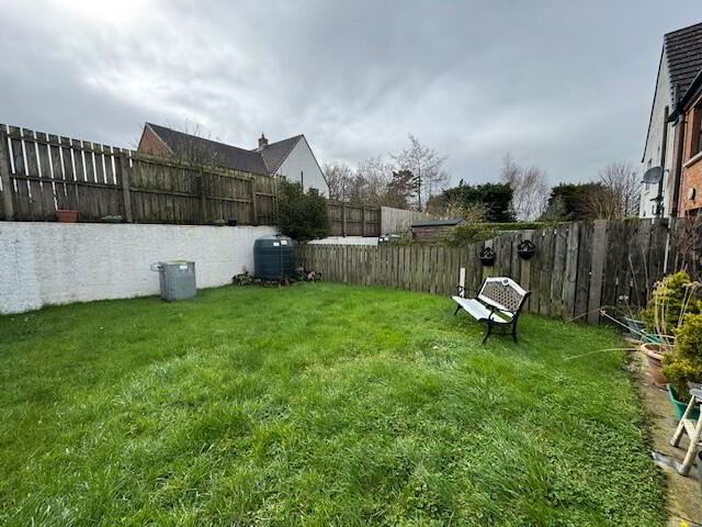 2.) South-facing rear garden area in lawn enclosed by wooden fencing. UPVC oil tank. Outside tap. Outside light. Enclosed OFCH boiler. Access to front.