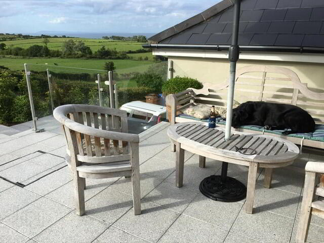 1.) Top garden in lawn and mature hedging and adjacent patio with polished Tobermore natural stone. Outside lights. Outside tap.