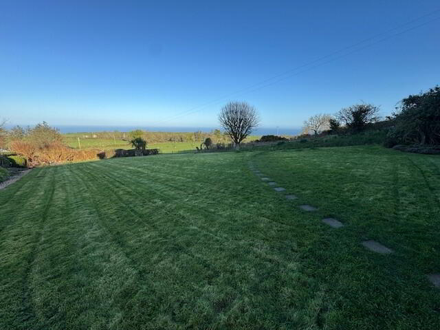 3.) Extensive lower garden in lawn bordered by pebble beds with an array of mature plants, shrubs and trees. Hot and cold outside taps. UPVC oil tank. Wooden potting shed. Outside light.